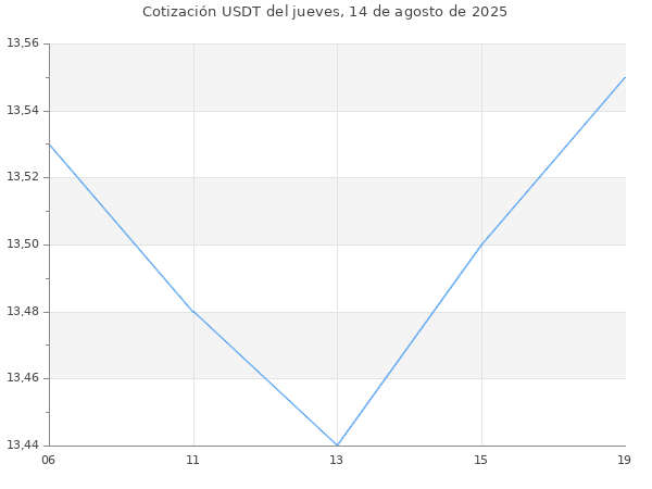 Cotización del USDT en Bolivia del jueves, 14 de agosto de 2025