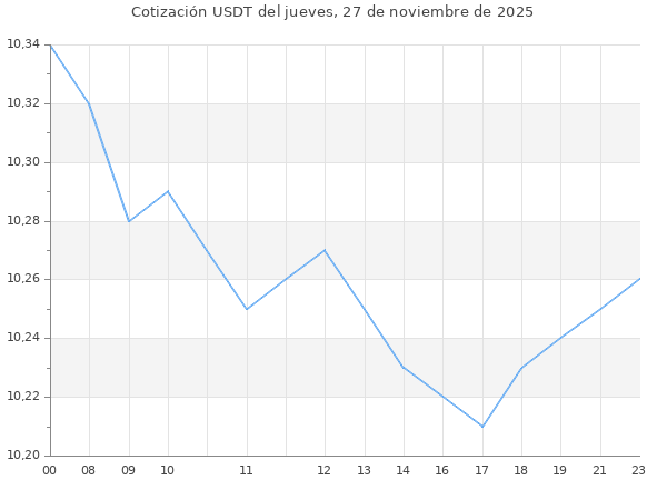Cotización del USDT en Bolivia del jueves, 27 de noviembre de 2025