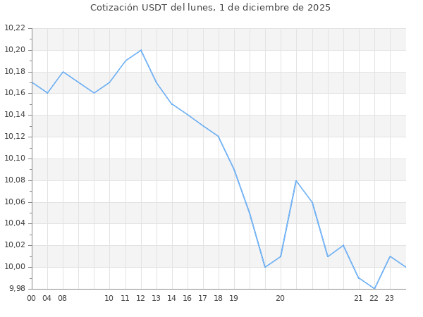 Cotización del USDT en Bolivia del lunes, 1 de diciembre de 2025