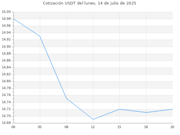 Cotización del USDT en Bolivia del lunes, 14 de julio de 2025