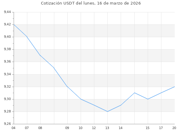 Cotización del USDT en Bolivia del lunes, 16 de marzo de 2026