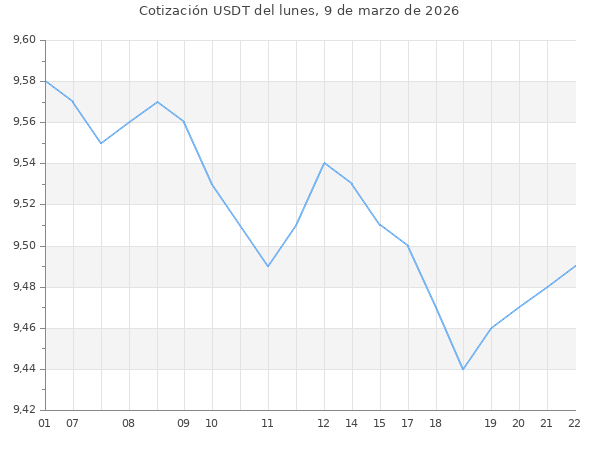 Cotización del USDT en Bolivia del lunes, 9 de marzo de 2026