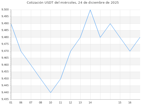 Cotización del USDT en Bolivia del miércoles, 24 de diciembre de 2025