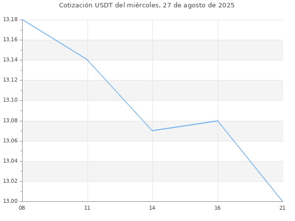 Cotización del USDT en Bolivia del miércoles, 27 de agosto de 2025