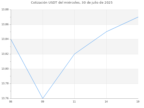 Cotización del USDT en Bolivia del miércoles, 30 de julio de 2025
