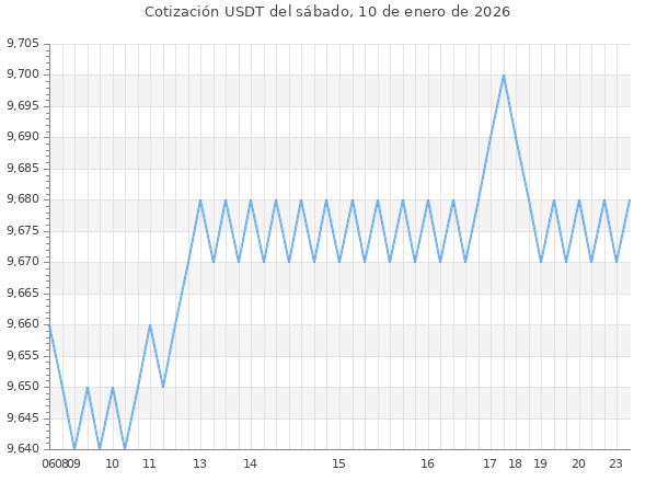 Cotización del USDT en Bolivia del sábado, 10 de enero de 2026