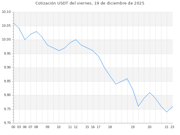 Cotización del USDT en Bolivia del viernes, 19 de diciembre de 2025