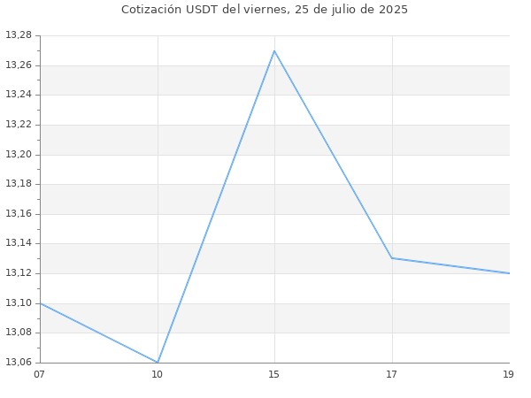 Cotización del USDT en Bolivia del viernes, 25 de julio de 2025