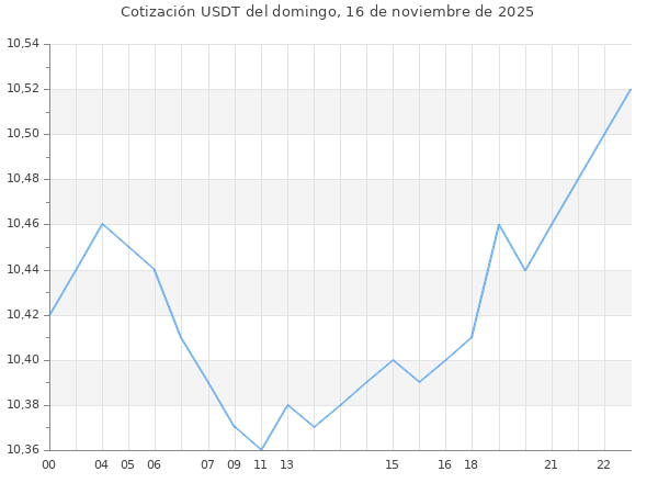 Cotización del USDT en Bolivia del domingo, 16 de noviembre de 2025
