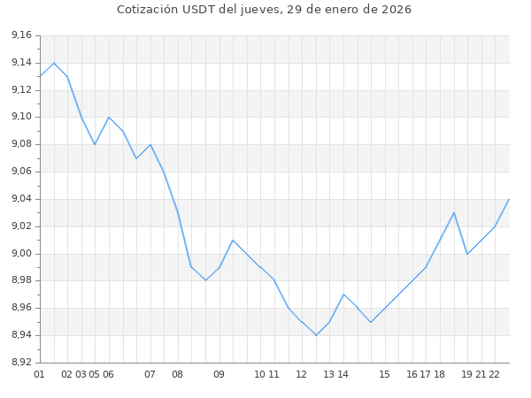 Cotización del USDT en Bolivia del jueves, 29 de enero de 2026
