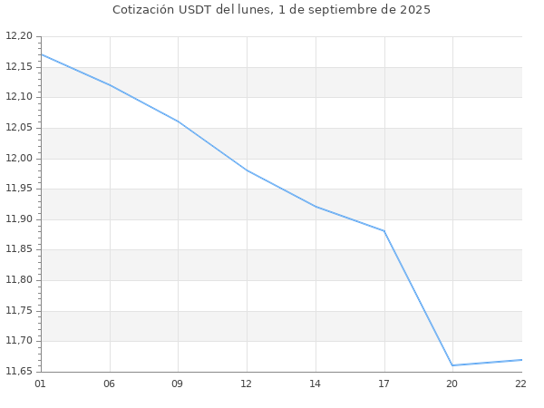 Cotización del USDT en Bolivia del lunes, 1 de septiembre de 2025