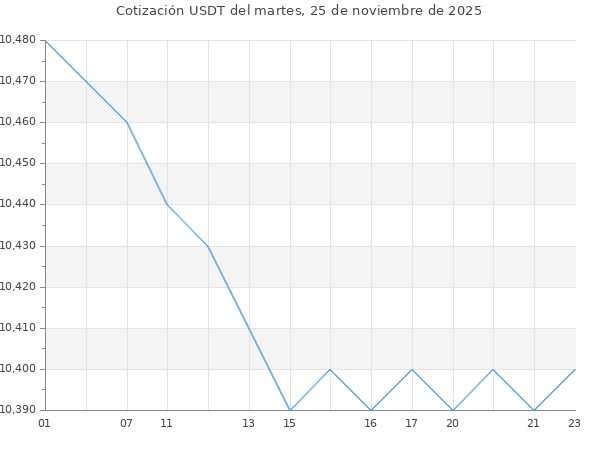 Cotización del USDT en Bolivia del martes, 25 de noviembre de 2025
