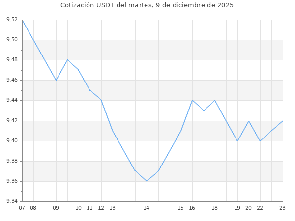 Cotización del USDT en Bolivia del martes, 9 de diciembre de 2025