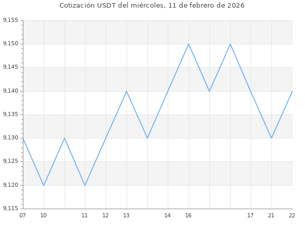 Cotización del USDT en Bolivia del miércoles, 11 de febrero de 2026