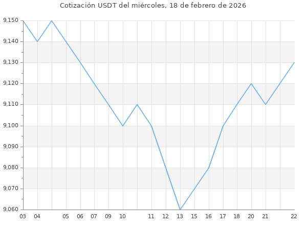 Cotización del USDT en Bolivia del miércoles, 18 de febrero de 2026