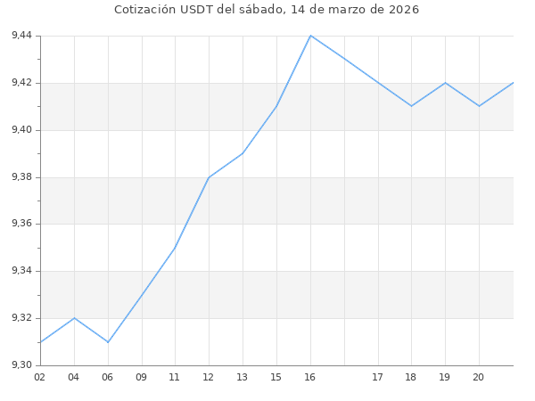 Cotización del USDT en Bolivia del sábado, 14 de marzo de 2026