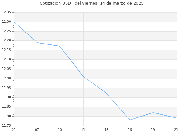 Cotización del USDT en Bolivia del viernes, 14 de marzo de 2025