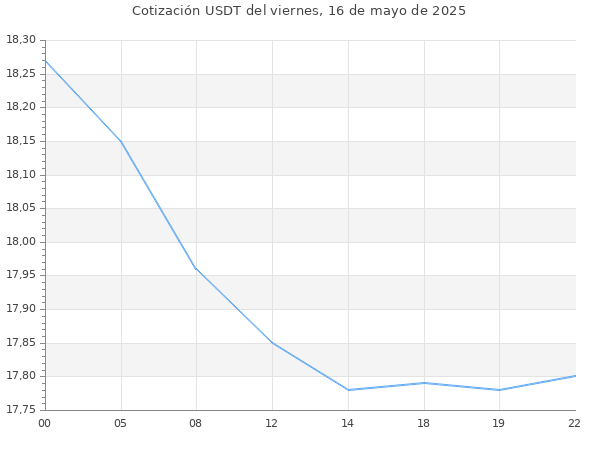 Cotización del USDT en Bolivia del viernes, 16 de mayo de 2025