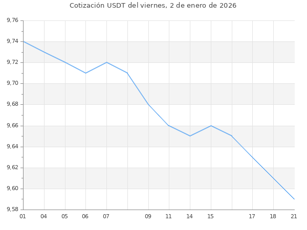 Cotización del USDT en Bolivia del viernes, 2 de enero de 2026