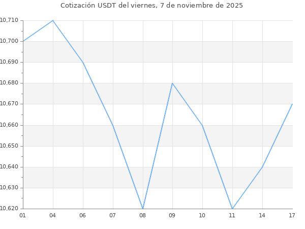 Cotización del USDT en Bolivia del viernes, 7 de noviembre de 2025